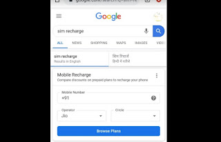 दूसरा स्टेप– अब गूगल सर्च बॉक्स में टाइप करें ‘SIM recharge’.