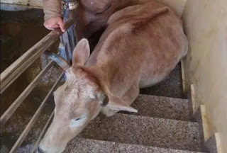 देहरादून I एक अप्रत्याशित घटना क्रम के तहत एक गाय न जाने कैेसे तीन मंजिला मकान की छत पर पहुंच गई। लेकिन स्थिति उस समय खराब हो गई जब गाय नीचे नहीं उतर पायी। इसी बीच घटनाक्रम की जानकारी प्रमुख वन संरक्षक जयराज को दी गई तो उन्होंने विभागीय रेस्क्यू टीम को मौके पर भेजा। आखिरकार रेस्क्यू टीम ने दो घंटे की भारी जद्दोजहद के बाद जैसे.तैसे गाय को सुरक्षित नीचे उतारा। उसके बाद ही लोगों ने राहत की सांस ली।