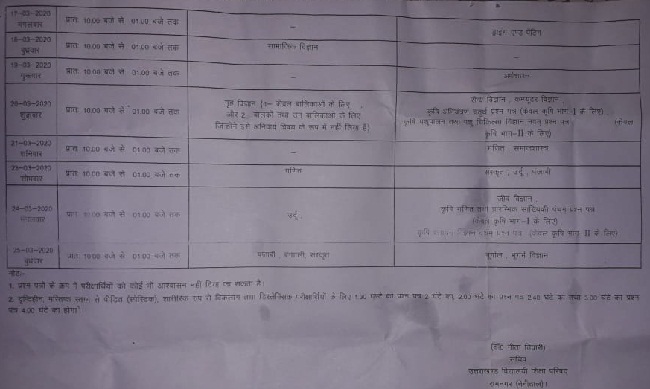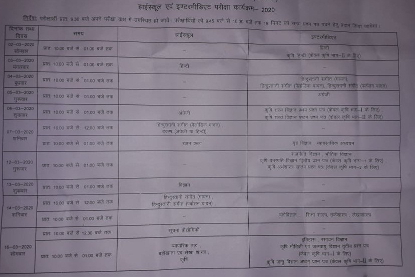 इंटर की परीक्षा दो मार्च और हाईस्कूल की परीक्षा तीन मार्च को हिंदी विषय के साथ शुरू होकर 25 मार्च तक चलेगी। परीक्षा एक ही पाली में सुबह दस बजे से दोपहर एक बजे तक होंगी। हाईस्कूल व इंटर की प्रयोगात्मक परीक्षा एक फरवरी से 25 फरवरी तक होगी। हाईस्कूल में इस बार 150279 व इंटर में 121126 परीक्षार्थी पंजीकृत हैं। प्रदेश में 1324 परीक्षा केंद्र बनाए गए हैं। जिसमें 225 अतिसंवेदनशील व 27 संवेदनशील केंद्र शामिल हैं।