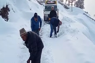 पिथौरागढ़. ऊंचाई वाले इलाकों में हो रही भारी बर्फबारी ने जनजीवन को प्रभावित कर दिया है. आलम ये है कि सड़कों पर भारी मात्रा में बर्फ गिरने से गाड़ियों की रफ्तार थम गई है. थल-मुनस्यारी मोटरमार्ग पूरी तरह से बंद हो गया है. सड़कों पर से जमा बर्फ हटाने का काम खुद यात्री कर रहे हैं ताकि वे अपना सफर पूरा कर पाएं. इस क्षेत्र में प्रशासनिक तंत्र कहीं भी नजर नहीं आ रहा है. इस वजह से यातायात और सामान्य जनजीवन बुरी तरह प्रभावित हो गया है. इससे समझा जा सकता है कि यात्रियों के सामने कैसी-कैसी परेशानियां सामने आ रही होंगी.