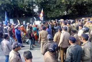 देहरादून । प्रमोशन में आरक्षण और सीधी भर्ती में पुराने आरक्षण रोस्टर को लागू करने की मांग को लेकर आज एससी एसटी कर्मचारी देहरादून में आयोजित महारैली में जुटे। कर्मचारियों ने चेतावनी दी है कि यदि सरकार उनकी मांगे पूरी नहीं करती तो ये वर्ग सामूहिक रूप से धर्म परिवर्तन पर विचार करेगा। एससी एसटी इंप्लाइज फेडरेशन के आह्वान पर आयोजित यह महारैली आज परेड ग्राउंड से निकली। यहां से प्रदर्शनकारी सचिवालय पहुंचकर मुख्यमंत्री को ज्ञापन सौंपेंगे। रैली को ध्यान में रखकर भारी संख्या में पुलिस बल तैनात किया गया है। रैली के दौरान प्रदर्शनकारियों ने खूब नारेबाजी की। महारैली में प्रदेशभर से बड़ी संख्या में एससी एसटी और ओबीसी वर्ग के कर्मचारी देहरादून पहुंचे हैं।