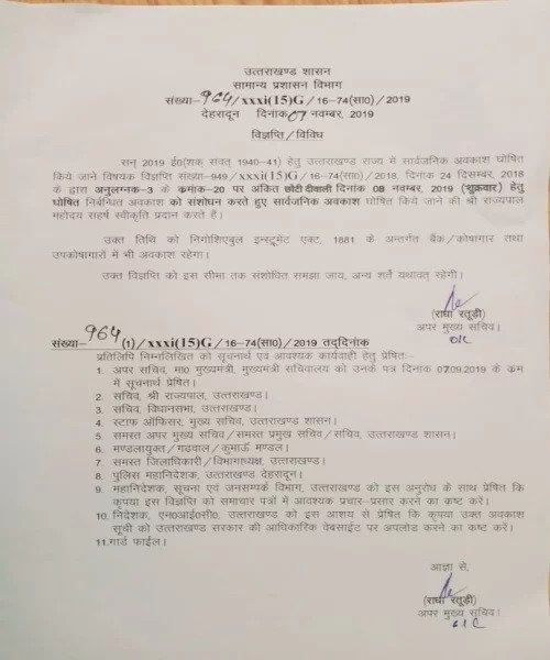 हैरत की बात ये है कि कथित फर्जी आदेश पर अपर मुख्स सचिव राधा रतूड़ी के साइन भी हैं। वहीं आदेश वायरल होने के बाद कई जिलों के स्कूलों में इगार की छुट्टी भी घोषित कर दी है। हालांकि सूत्रों का कहना है कि राज्य सरकार छुट्टी घोषित करने पर विचार कर रही है, लेकिन इस तरह से फर्जी आदेश जार होना गंभीर विषय है। इसके बाद एसीएस रतूड़ी ने स्पष्टीकरण जारी करते हुए कहा कि ऐसा कोई आदेश जारी नहीं हुआ है। पत्र को लेकर एफआईआर दर्ज की जाएगी।