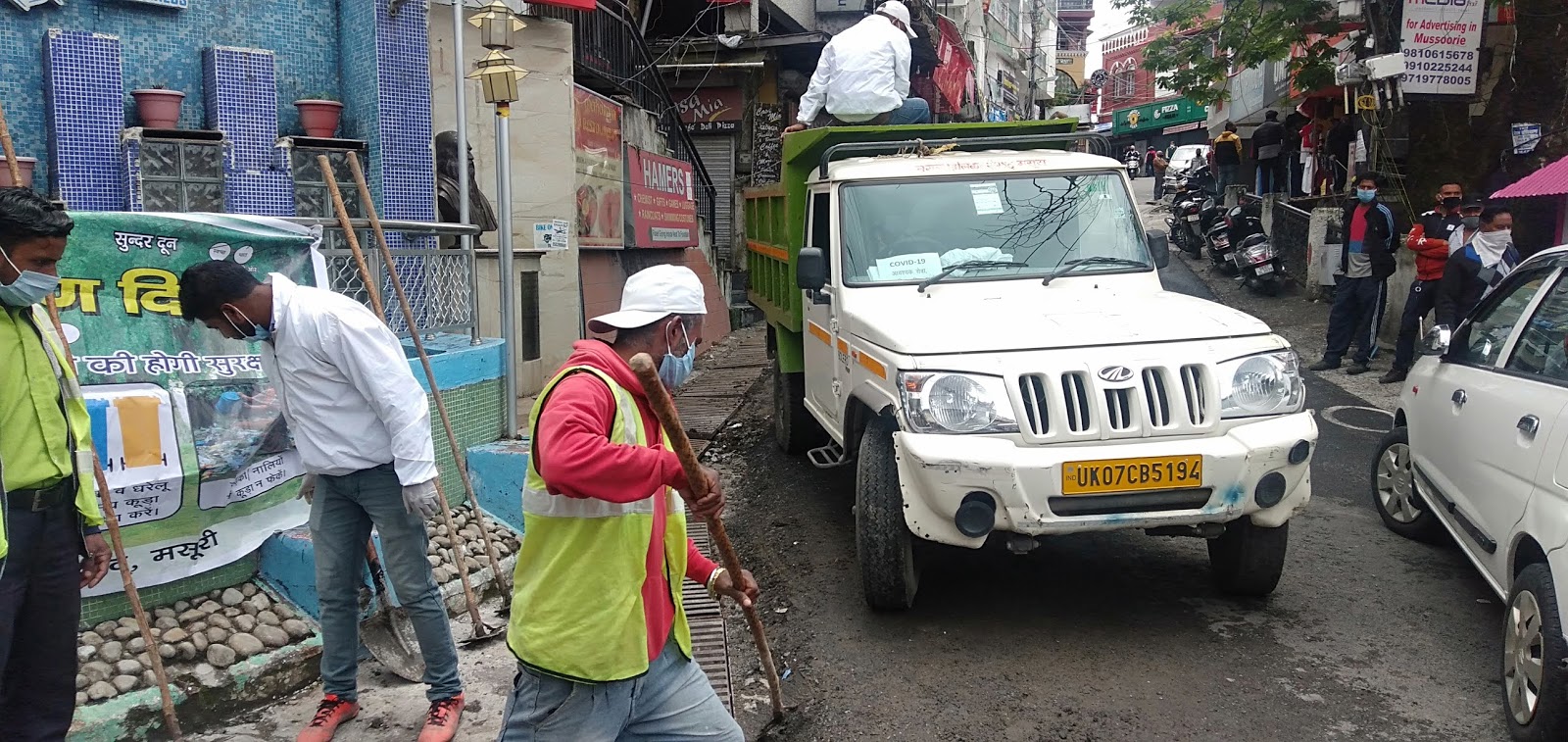मसूरी,5,जून,विश्व पर्यावरण दिवस पर पालिका परिषद मसूरी ने स्वच्छता अभियान के तहत माल रोड की नालियों को किया साफ।
