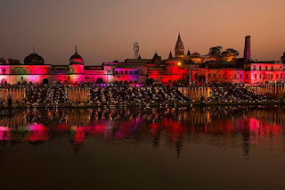 मर्यादा पुरुषोत्तम की नगरी अयोध्या दीपोत्सव की पूर्वसंध्या पर शुक्रवार को सरयू के सभी घाट सतरंगों के बिजली बल्बों से जगमगा रहे हैं. घाटों पर पर्यटकों का जमवाड़ा लगा हुआ है. हनुमानगढ़ी, रामदास की छावनी, दशरथ महल, रामवल्लभ कुंज, बड़े भक्त हनुमान समेत चिन्हित सभी बड़े मंदिरों में जबर्दस्त लाइटिंग की गई है.