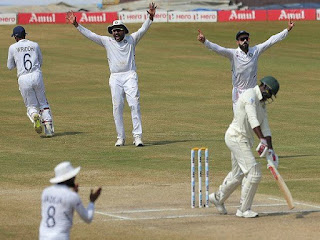 भारत की ओर से शमी ने 35 रन पर पांच विकेट, जडेजा ने 87 रन पर चार विकेट और अश्विन ने 44 रन पर एक विकेट हासिल किया। पहली पारी में सात विकेट लेने वाले अश्विन ने इसके साथ ही सबसे तेजी से 350 टेस्ट विकेट लेने के श्रीलंका के महान स्पिनर मुथैया मुरलीधरन के टेस्ट रिकार्ड की बराबरी कर ली है।