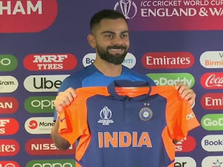 बर्मिंघम: भारतीय क्रिकेट टीम की रविवार को मेजबान इंग्लैंड से बर्मिंघम के एजबेस्टन मैदान पर होगी। इंग्लैंड की सेमीफाइनल में पहुंचने की संभावनाएं इस मैच पर निर्भर करेंगी। इसके अलावा मेन इन ब्लू के रूप में दुनियाभर में जानी जाने वाली टीम इंडिया पहली बार एक नई जर्सी के साथ मैदान में उतरेगी। जिसका विराट ने शनिवार को प्रेस कॉन्फ्रेंस के बाद अनावरण भी किया। हालांकि इस जर्सी को लेकर भारत में विवाद भी हो रहा है। राजनीतिक दल भारतीय जनता पार्टी पर क्रिकेट के भगवाकरण का आरोप लगा रहे हैं।