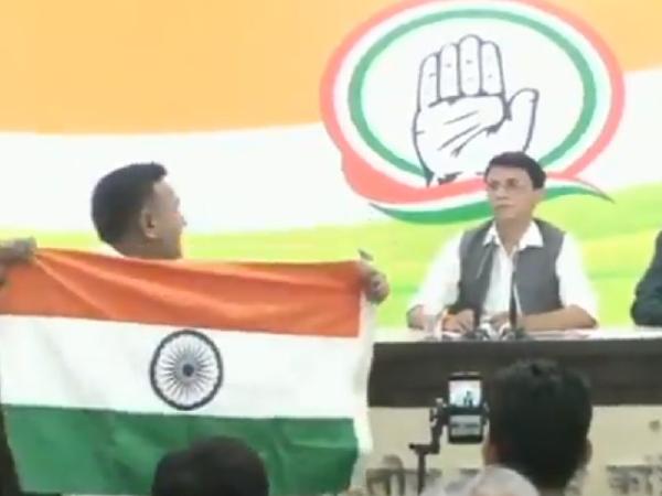 नई दिल्ली I कांग्रेस की प्रेस कॉन्फ्रेंस में एक चौंकाने वाला वाकया हुआ. दिल्ली में बुधवार को आयोजित इस कार्यक्रम में कांग्रेस प्रवक्ता पवन खेड़ा अपनी बात शुरू करते, उससे पहले ही हाथों में तिरंगा लिए एक शख्स भरी सभा में मंच के सामने आया और ऊंची आवाज में बोला, ‘योगी आदित्यनाथ को अजय सिंह बिष्ट कहना भारतीय संस्कृति का अपमान है, वंदे मातरम, भारत माता की जय.’ बाद में उस शख्स को कार्यक्रम से बाहर कर दिया गया.