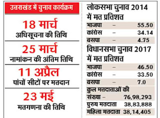 वर्ष 2014 के लोकसभा चुनाव में भाजपा ने राज्य की पांचों सीटों पर परचम फहराया। हालांकि तब इसे मोदी मैजिक का असर कहा गया लेकिन तीन वर्ष बाद वर्ष 2017 की शुरुआत में हुए विधानसभा चुनाव में भी भाजपा ने सत्तारूढ़ कांग्रेस को चारों खाने चित कर दिया। 70 सदस्यीय विधानसभा में भाजपा तीन-चौथाई से ज्यादा बहुमत के साथ 57 सीटों पर काबिज हुई, जबकि उसकी मुख्य प्रतिद्वंद्वी कांग्रेस को महज 11 सीटों पर ही सिमटना पड़ा। यानी, पिछले पांच सालों के दौरान भाजपा उत्तराखंड में अजेय स्थिति में बनी हुई है।